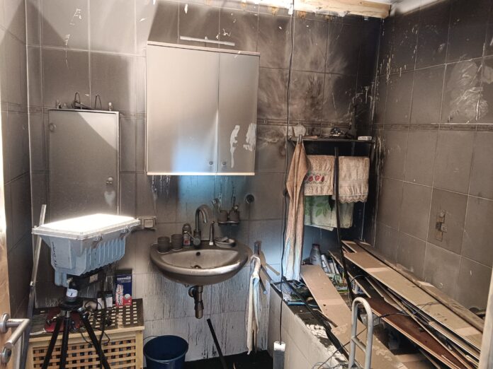 Vor Ort konnte festgestellt werden, dass der Brand bereits von selbst erloschen war. Der kleinräumige Brand im Badezimmer verrauchte die angrenzenden Wohnräume. Im Badezimmer selbst wurde die Zwischendecke abgenommen und der Bereich mittels Wärmebildkamera kontrolliert.