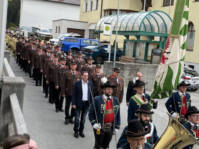 Mit Musikkapelle und Schützen zog die Feuerwehr Strengen zum Gottesdienst ein.
