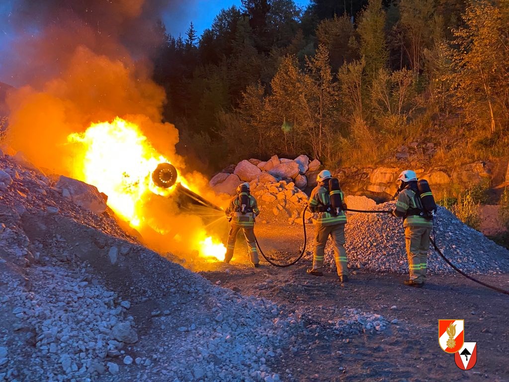 „Fahrzeugbrand“, mit dieser Übungsannahme rückte die Feuerwehr Strengen am Montag, den 13. Oktober 2021 aus.