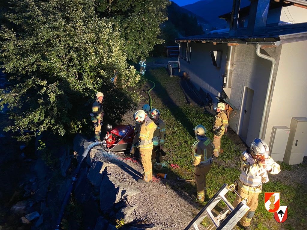 Die Mannschaft des KLF errichtete eine Saugstelle an der nahegelegenen Rosanna und führte einen Angriff mit einem Strahlrohr durch.